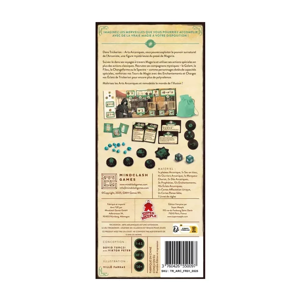 Trickerion : Arts Arcaniques est une extension jouable de 1 à 4 joueurs dès 14 ans pour des parties d’environ 60 minutes, édité par Super Meeple.