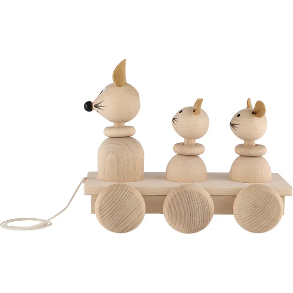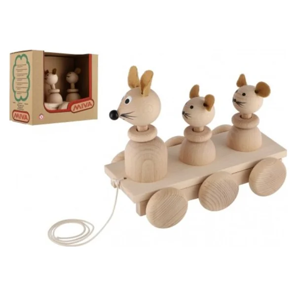 Trois souris à tirer en bois naturel