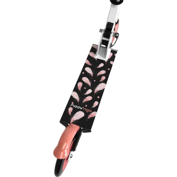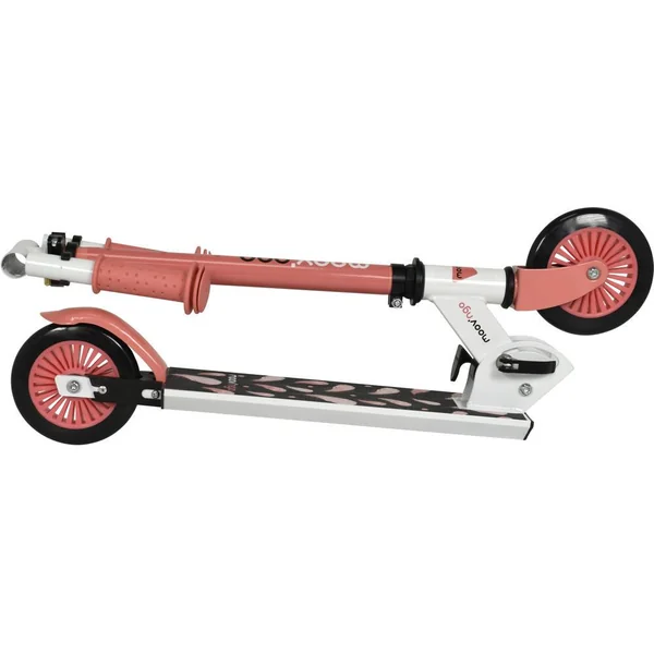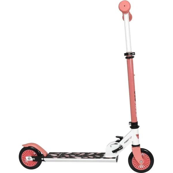 Structure en acier plus résistante. Système de pliage rapide intégré et protégé. Hauteur ajustable : guidon T-bar réglable sur 3 niveaux (de 71 à 81 cm). Poignées pliables et rétractables en plastique souple. Frein sur roue arrière intégré. Roues de 121 mm : 2 roues de 121 mm de diamètre en PVC, 82A. Roulement ABEC-5. Repose-pieds avec grip antidérapant. A partir de 4 ans, 50 kg maximum. Norme EN71-1. Pour enfant de 0.95 m à 1.20 m. Notice incluse. Coloris : rose.
