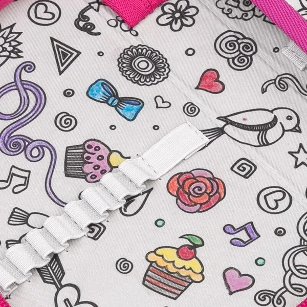 Bonus ! La doublure intérieure de la trousse scolaire est fabriquée en tissu gris et les motifs imprimés dessus peuvent être coloriés ! Nous recommandons d’utiliser des crayons classiques pour le coloriage, les feutres pourraient baver…