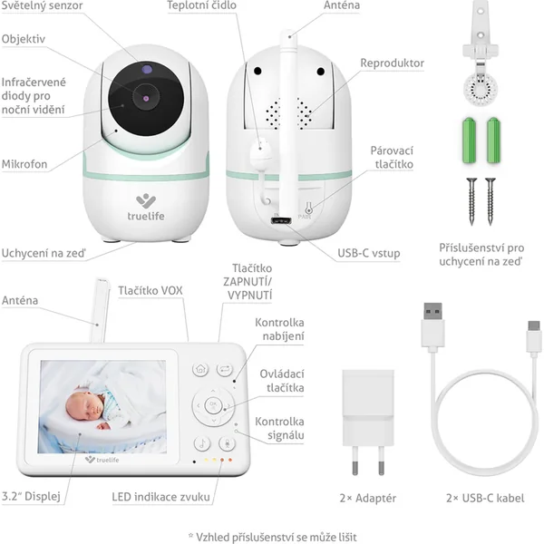 Le contrôle et le montage de la baby-sitter sont également simples. Vous pouvez utiliser le kit de montage mural inclus ou acheter un support spécial TrueLife NannyCam Holder, qui peut être facilement enroulé autour de la surface.