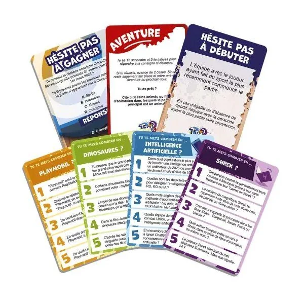 TTMC Sales Mômes, c’est la variante du jeu d’ambiance TTMC – Tu Te Mets Combien ? Destinée aux 9-13 ans dans laquelle ils vont auto-évaluer leurs connaissances de 1 à 5 sur une multitude de sujets adaptés à leur âge. Le but est d’être le premier à parcourir le plateau en répondant aux questions posées. A chaque note correspond une question, plus ou moins complexe : plus la note choisie est élevée, plus la question est pointue.