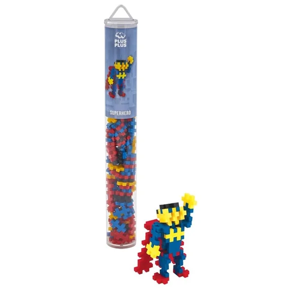 Dans ce tube, vous trouverez 100 pièces de Plus-Plus CLASSIC (20 mm) et une notice de construction qui vous guidera dans la création d’un superhéros incroyable. Costume rouge et bleu, cape, pouvoirs magiques… tous les éléments sont réunis pour des heures de jeu. Les méchants n’ont qu’à bien se tenir !