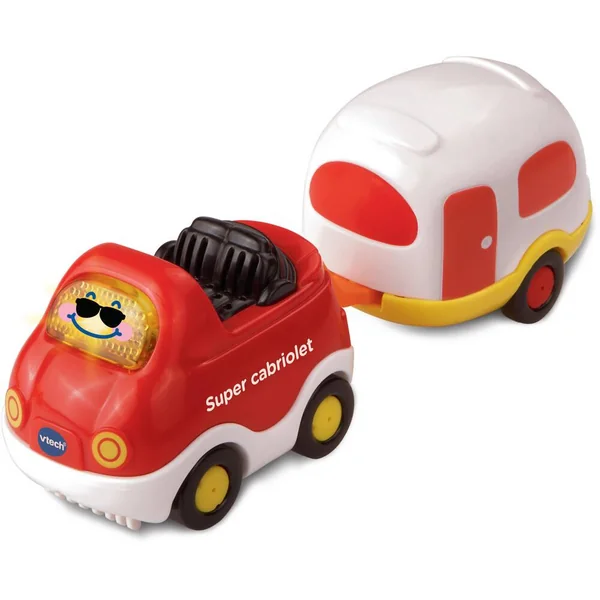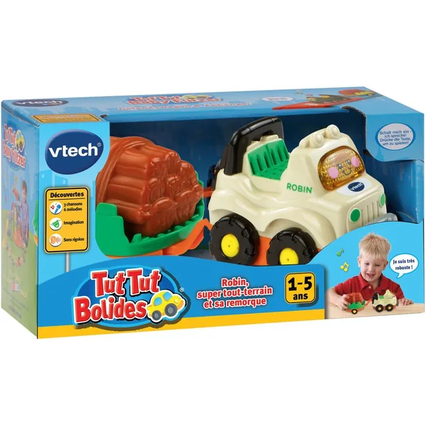 Tut Tut Bolides. Véhicules avec remorque. De 1 à 5 ans. D’adorables petites voitures parlantes, musicales et lumineuses avec leur remorque détachable ! Bébé peut ouvrir la fenêtre de la caravane ou faire tourner les deux parties de la citerne d’essence. Les Tut Tut Bolides accompagnent Bébé dans ses premières découvertes : nom, fonctions et particularités de chacun des véhicules, développement de la motricité…3 chansons rigolotes et 6 mélodies par véhicule. Les véhicules sont compatibles avec le système de détection « Zone magique » qui déclenche des phrases et des effets sonores supplémentaires. Les différentes remorques peuvent être rattachées à tous les véhicules Tut Tut Bolides. Différents modèles : Gaëtan, tracteur des champs et sa remorque ou Timothée, super cabriolet et sa caravane ou Robin, super tout-terrain et sa remorque ou Maxence, le camion à essence et sa semi remorque ou Joël, le camion poubelle. Modèle selon disponibilité. Vendu à l’unité. Pile de démonstration fournie