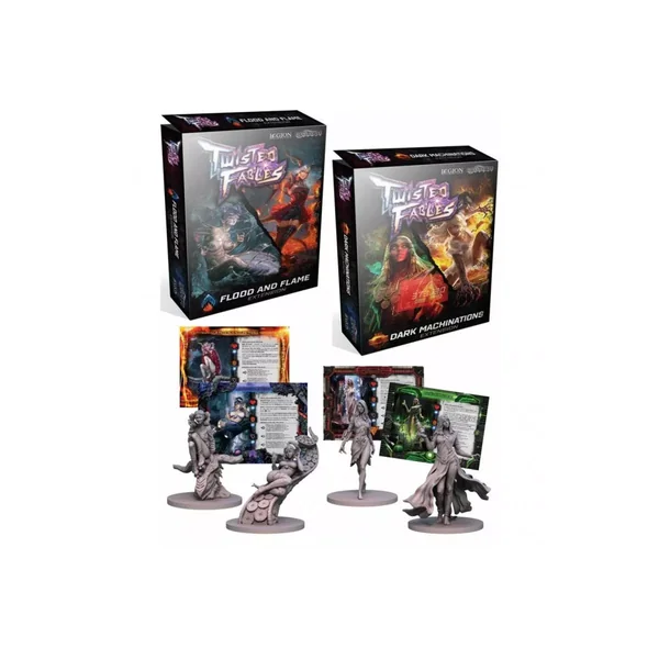Pour aller plus loin dans Twisted Fables, découvrez quatre nouvelles fables dans DARK MACHINATIONS et FLOOD & FLAME, les extensions du jeu de base.