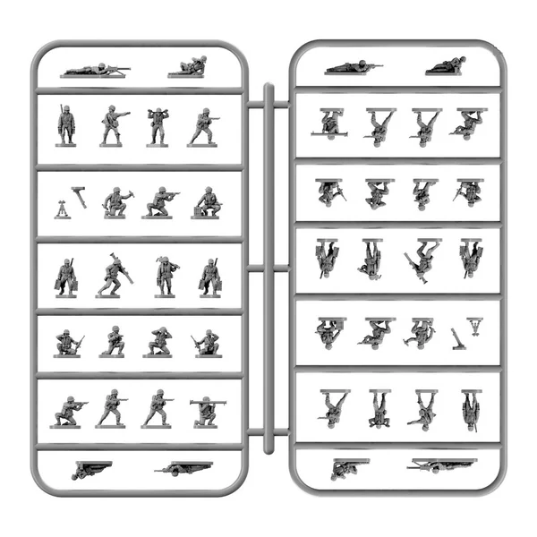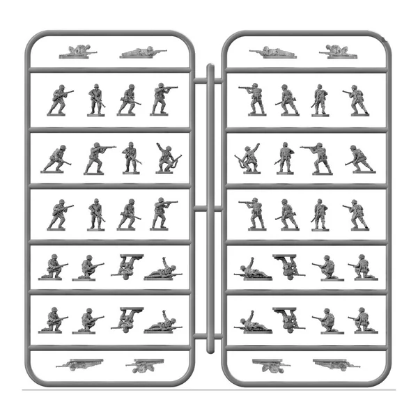 Vous pouvez déployer une compagnie d’infanterie entière dans un rapport 1/1 avec chaque set car ils contiennent suffisamment de fusiliers, de mitrailleuses légères, de mortiers, de sous-officiers, d’opérateurs radio, d’officiers, de sergents et de porteurs de munitions. Ils sont moulés en une seule pièce autant que possible, mais certaines armes telles que les mortiers et les mitrailleuses lourdes sont fournies en pièces multiples faciles à assembler.