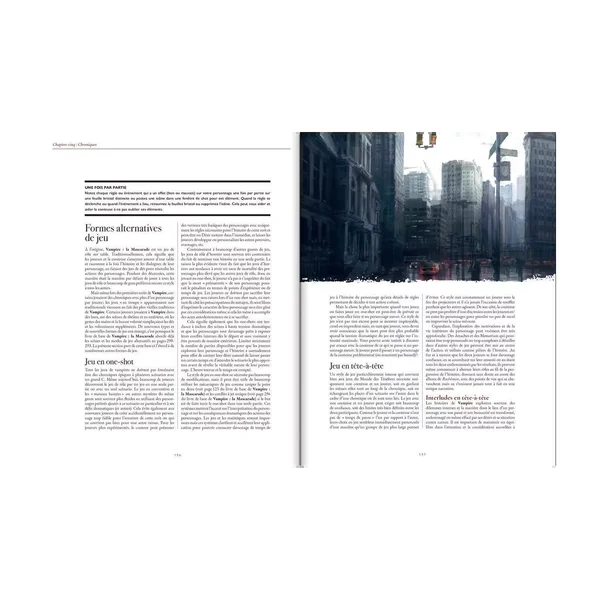 - Les règles générales et des conseils pour des types non traditionnels de chronique, notamment les chroniques de Sangs Clairs, le jeu en troupe, le jeu en distanciel et le jeu avec un conteur et un joueur ;