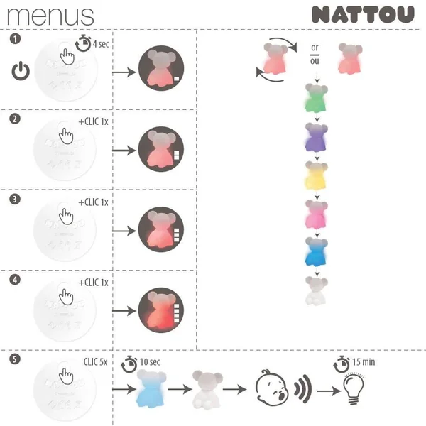 Veilleuse souris s’illumine lorsque bébé pleure pour le rassurer; 7 couleurs diponibles et 4 intensités. Silicone BPA Free.