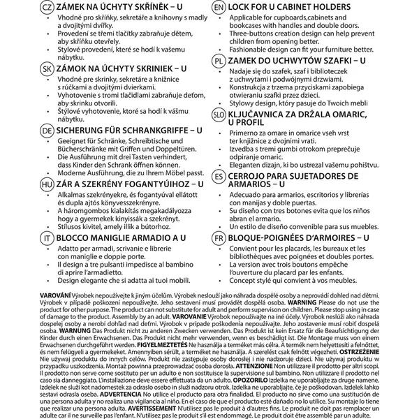 Verrou pour poignées d’armoires U, blanc/gris