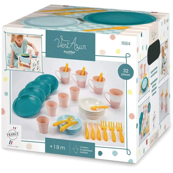 Très malin, cette boite servira de panier pique- nique pour transporter votre vaisselle dans le jardin. Ce produit de la gamme VERT AZUR s’inscrit dans une démarche éco-responsable. 32 pièces.