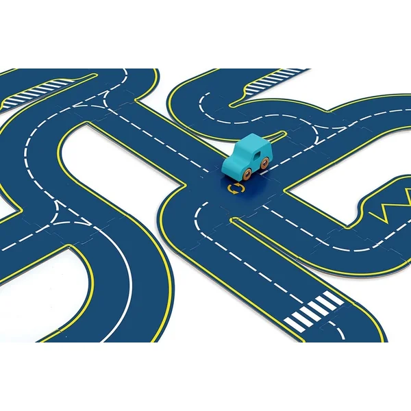 Le circuit en carton double face offre aux enfants deux surfaces de jeu différentes – une piste de course et une route classique. Cette variabilité élargit les possibilités de jeu et stimule l’imagination ainsi que la pensée créative.