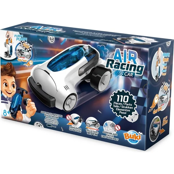 Le kit Air Racing Car offre une excellente combinaison de divertissement, de science et de mécanique – idéal pour les enfants et les jeunes constructeurs.