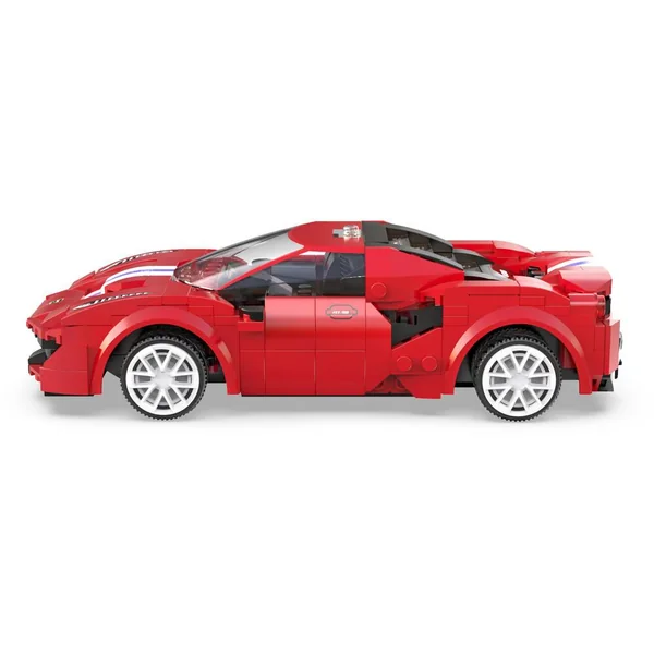 Echelle 1:20. Voiture de course radiocommandée. 306 pièces à assembler. Toutes fonctions : marche avant, arrière, tourne à gauche et à droite. Télécommande avec une technologie 2.4GHz. Multijoueur. Portée : 25 mètres. Vitesse maximale : 3.8 km/h. Piles non fournies : 3 piles LR6 pour le véhicule, 2 piles LR03 pour la radiocommande. Durée d’utilisation : environ 35 minutes. Matière : en ABS. Dimensions du véhicule assemblé : 19.8 x 9.6 x 5.5 cm. Notice incluse : instructions et notice d’assemblage.