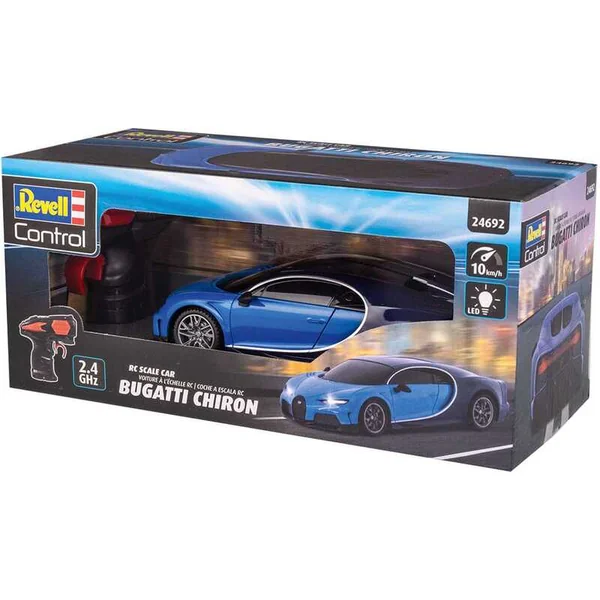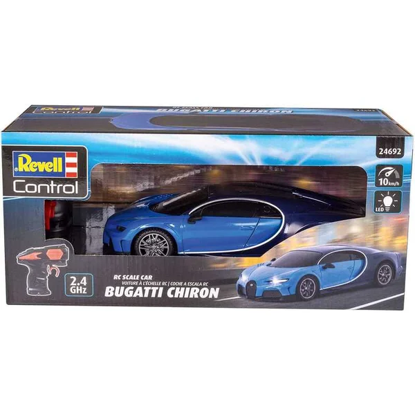 La Bugatti Chiron, nommée d’après le légendaire pilote Louis Chiron, est un chef-d’œuvre de technique et représente l’absolue perfection et performance. Avec une vitesse maximale de 420 km/h et un prix de plusieurs millions d’euros, la Bugatti Chiron est un symbole de luxe et de vitesse. Le kit Revell Control RC Bugatti Chiron apporte cette expérience directement chez vous dans un format plus petit et plus accessible, vous permettant de ressentir le contact avec ce véhicule exceptionnel.