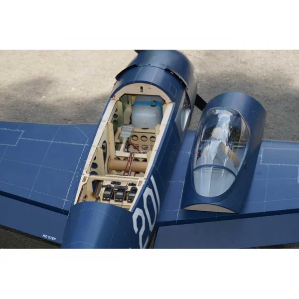 Un détail intéressant de ce modèle est le grand capot moteur. C’est un design intelligent qui permet d’accueillir même un moteur ZG45 avec son amortisseur de série sans avoir besoin de découper le capot. Les tuyaux d’échappement s’étendent juste en dessous du capot, ce qui donne au Bearcat F8F une allure plus authentique et assure le bon fonctionnement du moteur à combustion. C’est une caractéristique qui distingue ce modèle et qui témoigne du souci du détail de Picheler.