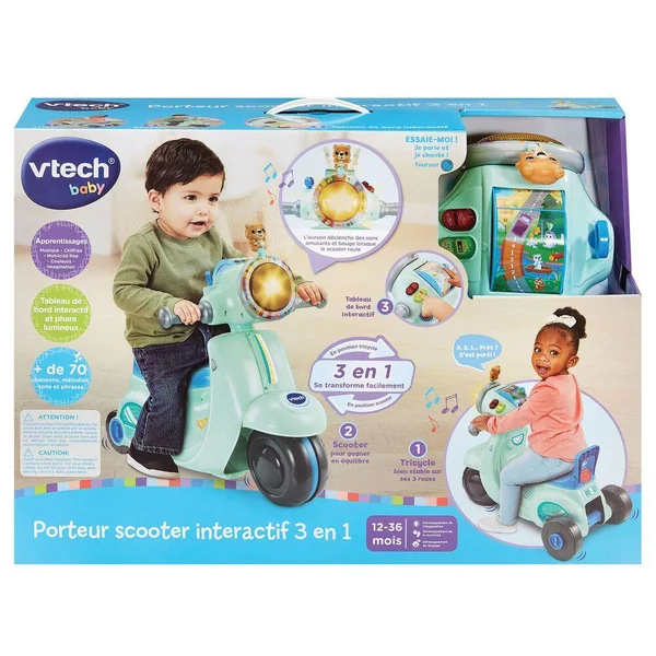 VTECH BABY – PORTEUR SCOOTER INTERACTIF 3 EN 1 BLEU