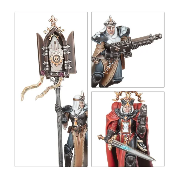 Ce kit est composé de 128 éléments en plastique, de 1x Socle Rond Citadel de 32mm, de 10x Socles Ronds Citadel de 28,5mm et de 1x Planche de Décalcos de l’Adepta Sororitas comprenant 290 décalcos de grande qualité pour décorer vos figurines.