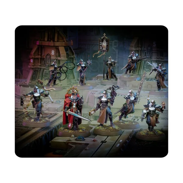 Ce kit en plastique permet d’assembler 10 Sœurs Novices, des guerrières inexpérimentées mais dangereuses pour vos armées de l’Adepta Sororitas dans les parties de Warhammer 40,000. Idéales pour aller prendre et tenir des objectifs, elles sont un atout vital pour les Sœurs de Bataille. Le kit est hautement personnalisable, en choisissant entre des fusils d’assaut ou la combinaison d’épées et de pistolets-mitrailleurs plus orientée sur la mêlée. Menées par une Novice Supérieure en armure énergétique complète, ces Sœurs frappent plus fort que vos adversaires pourraient le suspecter, et ouvrent de nouvelles options tactiques à vos armées de l’Adepta Sororitas.
