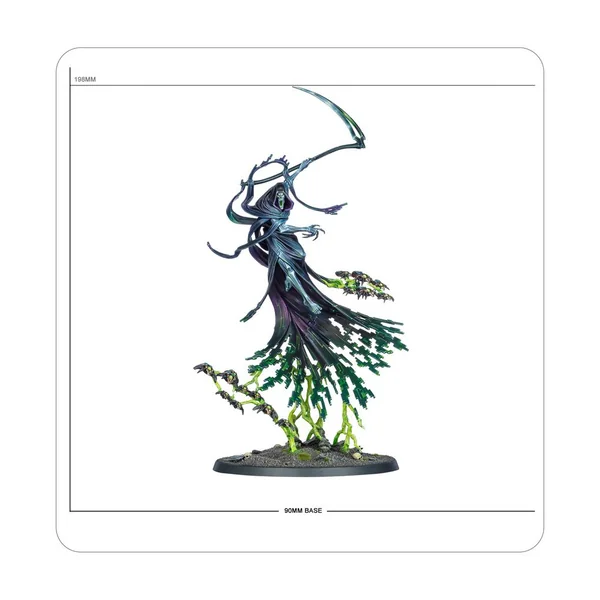 Le Nyctophore fut autrefois la mort incarnée, un dieu sadique habité de la puissance de défaire les astres, et d’un appétit pour l’énergie vitale de la galaxie. Comme tous ses semblables C’tan, les Nécrons le firent voler en éclats, et ses fragments rendus fous ont depuis été réduits en esclavage par ceux qu’il dominait jadis. Une seule écharde du Nyctophore peut détruire des armées entières. De son nécroderme s’étend une lame à forme de faux, dont il se sert pour balayer ses ennemis par de grands arcs d’anéantissement entropique. Son regard même est celui de la mort, capable d’aspirer l’essence qui anime ses victimes. Ce kit en plastique permet d’assembler une Écharde C’tan du Nyctophore, le plus dangereux des fragments des dieux stellaires, pour votre armée de Nécrons dans les parties de Warhammer 40,000. Même s’il n’est plus capable d’anéantir les étoiles elles-mêmes, sa puissante faux continue d’engranger une terrible récolte de victimes sur le champ de bataille, et son regard peut affaiblir et faire dépérir même les plus grands adversaires. L’Écharde du Nyctophore l’unité idéale à envoyer là où les combats sont les plus denses et récompense un style de jeu agressif. Elle constitue aussi une pièce centrale époustouflante pour toute collection, et les peintres apprécieront la fragmentation numérique de ses robes, sa nuée de scarabées, et son corps de métal vivant. Ce kit est composé de 31 éléments en plastique et de 1x Socle Rond Citadel de 90mm. Cette figurine est fournie non peinte et nécessite assemblage – nous recommandons d’employer la Colle Plastique Citadel et la peinture Citadel Colour. Les règles pour utiliser cette figurine dans les parties de Warhammer 40,000 sont disponibles en téléchargement gratuit sur le site Warhammer Community.