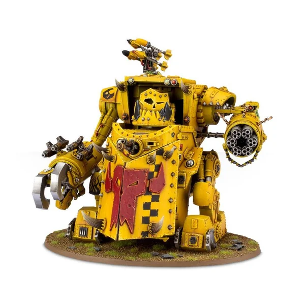 comme l’ennemi. Pilotée par un Nob ork, cette volumineuse armure orkoïde représente tout ce qu’un ork peut rêver d’être : massif, fort, bruyant et destructeur.
