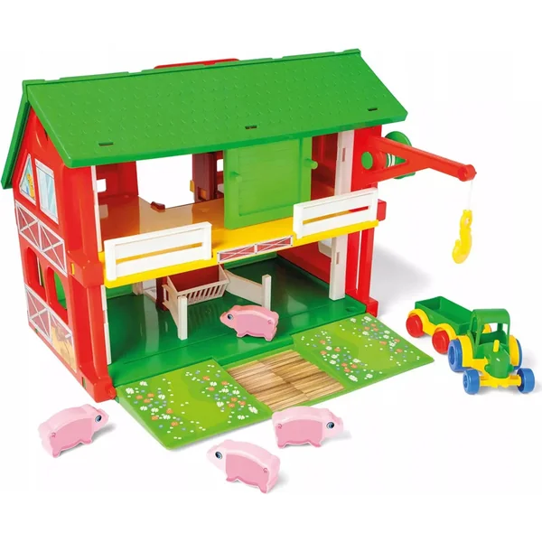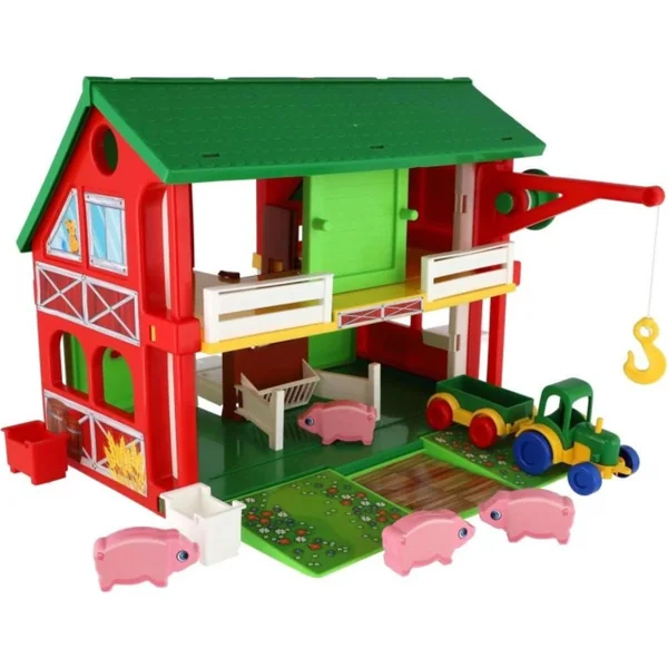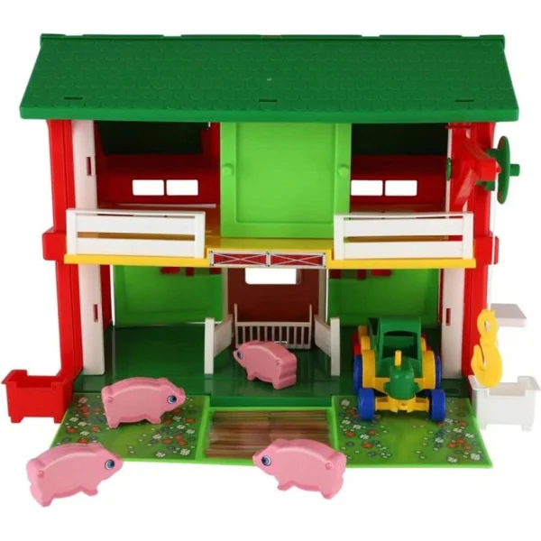 La maison Play House Ferme transportera votre enfant dans un monde agricole fascinant. L’ensemble comprend une maison à deux étages – ferme avec des portes ouvrantes, un ascenseur, une grue, un tracteur avec remorque, quatre petits cochons et un ensemble d’autocollants.