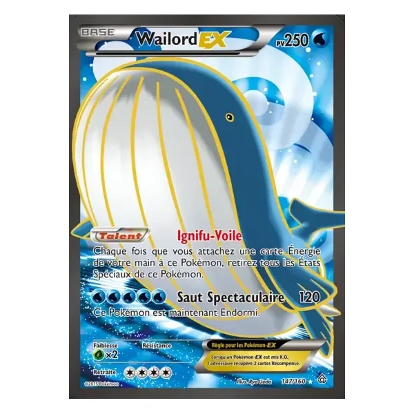 Découvrez Wailord (prc147), une carte Pokémon de l’extension Primo-Choc, provenant du bloc XY. Idéale pour compléter votre collection, cette carte Ultra Rare plaira autant aux collectionneurs qu’aux joueurs.