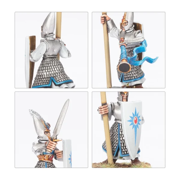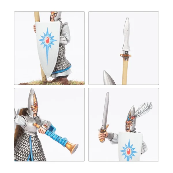 Ce kit en plastique permet d’assembler 32 Lanciers Elfiques, un cœur d’infanterie solide pour vos armées des Royaumes Hauts Elfes dans les parties de Warhammer: The Old World. Ces troupes flexibles et efficaces sont bien équipées, armées et protégées, et dignes de confiance pour tenir leur terrain ou avancer implacablement.