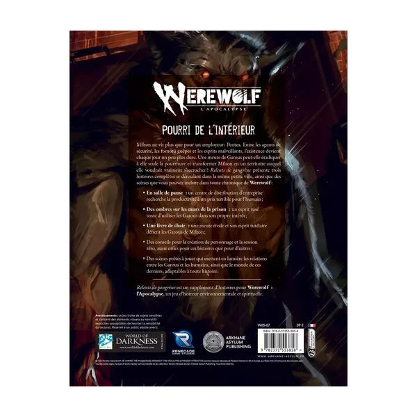 Relents de Gangrène présente trois histoires complètes se déroulant dans la même petite ville, ainsi que des scènes que vous pouvez inclure dans toute chronique de Werewolf :