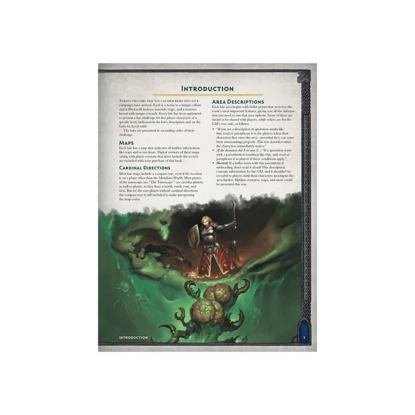 Ce livre contient 22 donjons ! Il y a au moins un donjon pour chaque niveau de jeu, du 2ᵉ au 20ᵉ. Chaque repaire inclut :