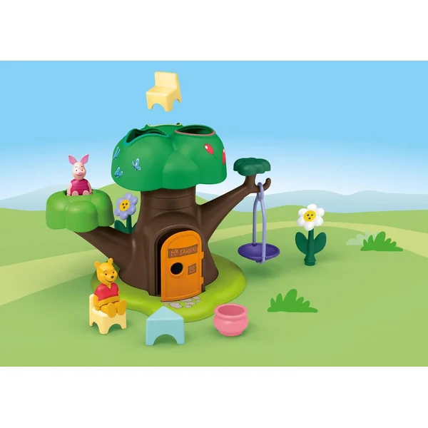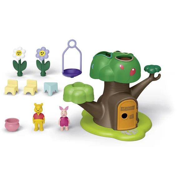 Il y a beaucoup de choses à découvrir dans l’arbre-cabane de Winnie et Porcinet : Différents objets peuvent être triés dans le haut de l’arbre en fonction de leur forme et de leur couleur afin de développer la motricité fine et la perception des formes du jeune enfant. Un toboggan caché permet aux objets de réapparaître au pied de l’arbre, apportant beaucoup d’amusement. Il y a bien d’autres détails captivants à explorer : Par exemple, faire tourner le petit feuillage fait du bruit et le deuxième feuillage devient un tourniquet. Les adorables personnages de Disney encouragent les enfants à raconter leurs propres histoires pendant leurs premiers jeux. S’engager à soutenir le développement des tout-petits grâce au jeu et à inspirer à la fois les enfants et les parents, telle est la mission de PLAYMOBIL Junior. Ce set transporte sans aucun doute les enfants dans l’univers enchanté de Disney revu par Playmobil. Avec 2 personnages et multiples possibilités de jeu.