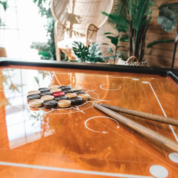 - 2 jeux de disques de carrom + 1 disque de rechange pour chaque jeu