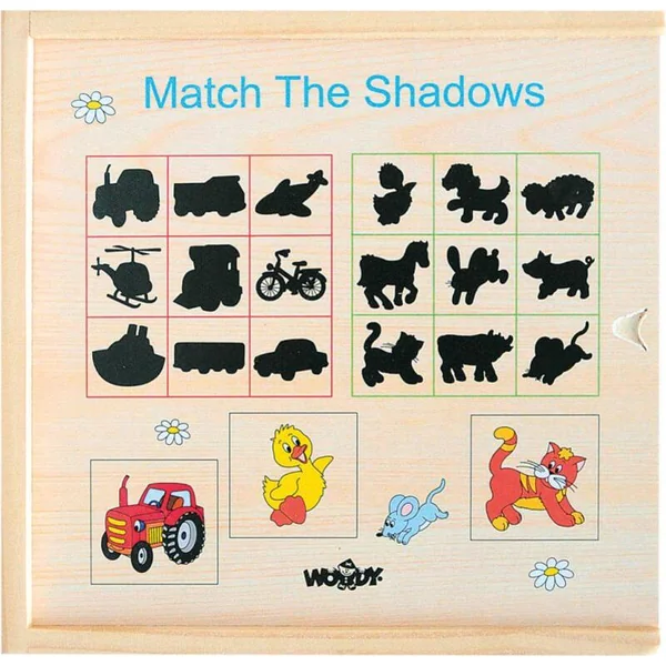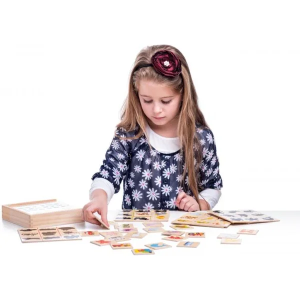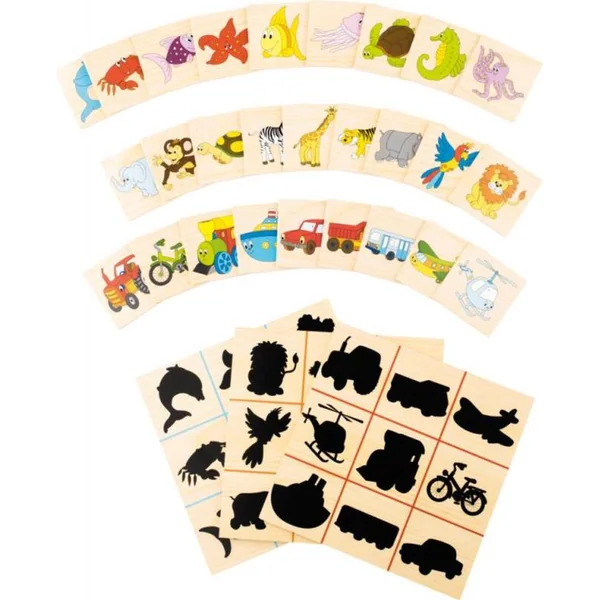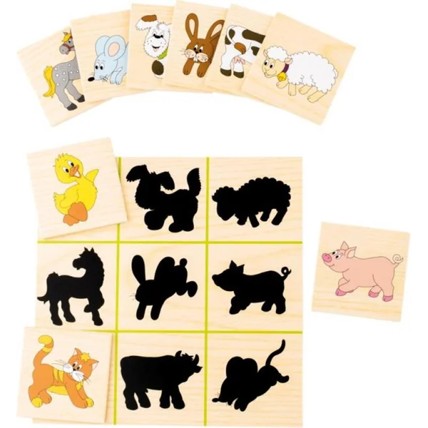 L’enfant associe des plaques avec des images colorées à leurs silhouettes noires.