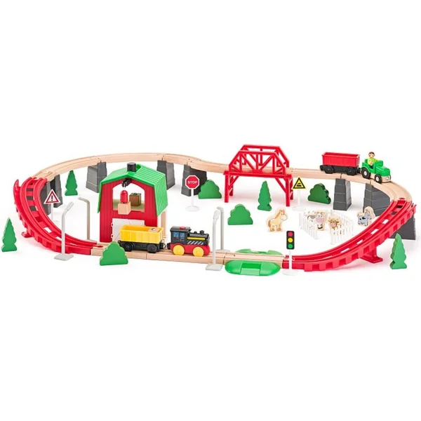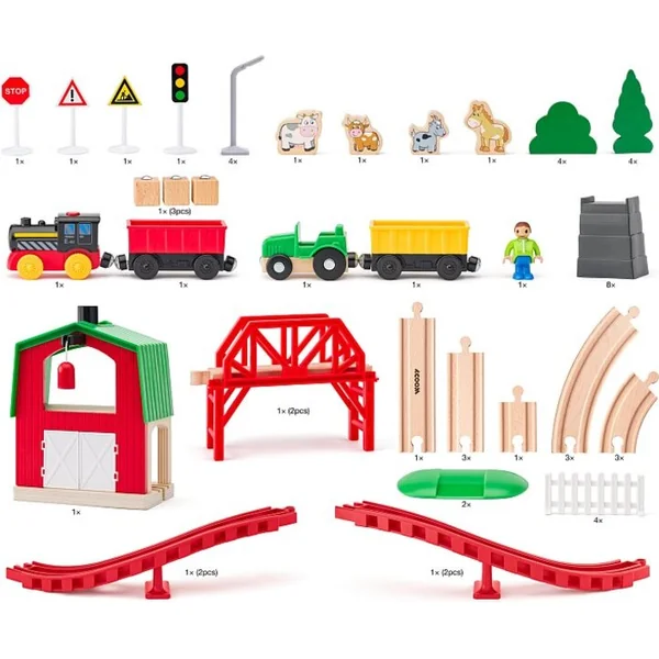 Woody Circuit de Train en Bois – Ferme, 60 pièces