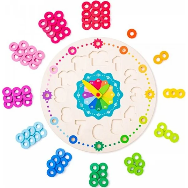 - Des anneaux colorés sont enfilés sur chaque chiffre, ce qui permet à l’enfant de mémoriser plus facilement le chiffre.