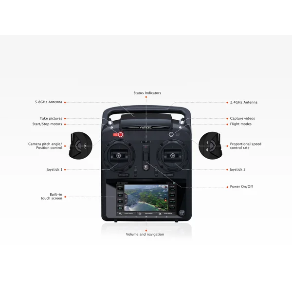 Les caméras de la célèbre marque Go Pro mais plus précisément les modèles GoPro Hero3, Hero3+, Hero4 Silver et Black Edition. Ce dernier quadricoptère Yuneec est aussi équipé d’un retour image jusqu’à environ 400m par l’émetteur MK58 et bien entendu retransmis sur l’écran LCD de votre radio commande ST10+.