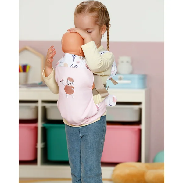 Ce porte-bébé confortable pour poupées en doux rose avec un motif floral vous permet de porter en toute sécurité des poupées de 36 cm et 43 cm – soit face à l’avant, soit vers les parents. La sangle réglable assure un port confortable et permet un ajustement parfait du porte-bébé à la taille de l’enfant.